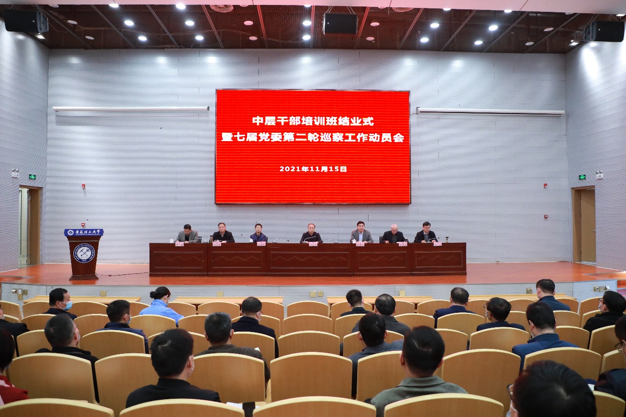 11月15日下午,学校中层干部培训班结业式暨七届党委第二轮巡察工作动员会在舜耕会堂举行,党委书记郭永存出席并讲话,党委副书记、常务副校长虞宝桃主持会议,校领导孟祥瑞、郑明东、宫能平、周旭、鲁超出席会议。