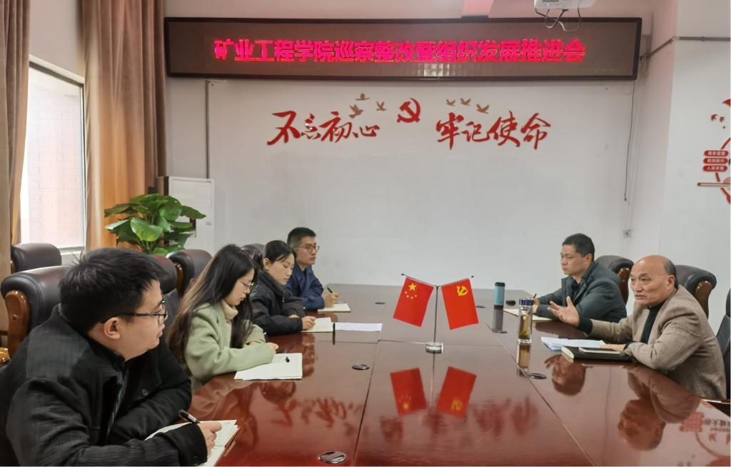 3月23日上午,矿业工程学院在宁远楼A406会议室召开巡察整改暨组织发展推进会。院党委书记盛鹏飞、副书记田秋实,各党支部书记、辅导员参加会议。会议由院党委书记盛鹏飞主持。