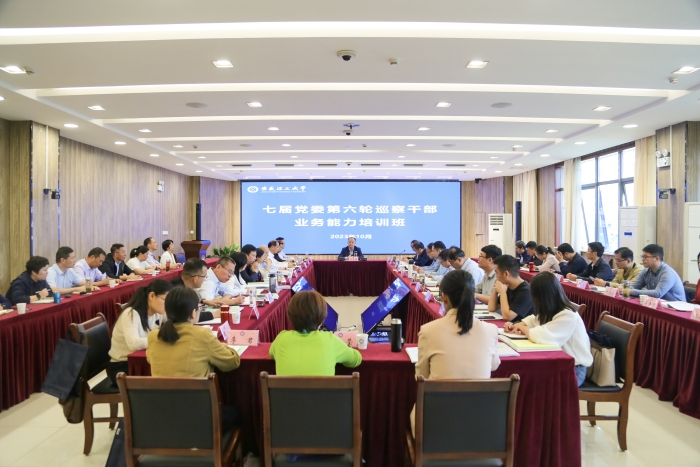 10月16日上午,校七届党委第六轮巡察干部业务培训班在舜耕楼西配楼二楼会议室举行,校党委书记、巡察工作领导小组组长郭永存开班动员并作题为《深入学习贯彻习近平总书记关于巡视巡察重要论述,全面提升学校巡察工作质量》的专题辅导报告。校党委常委、副校长、第六轮第二巡察组组长张平松主持开班式,市纪委监委驻市公安局二级调研员、校第六轮第一巡察组组长王林,校党委常委、第六轮第二巡察组常务副组长娄志勇参加会议。