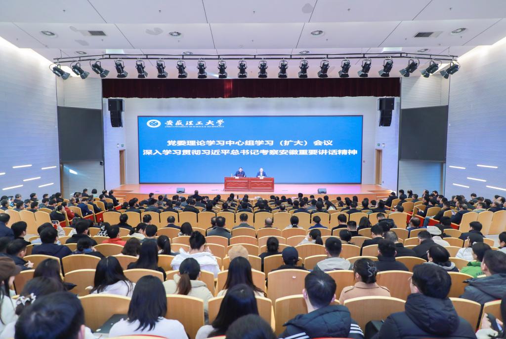 为深入学习贯彻习近平总书记考察安徽重要讲话精神,推动全校上下牢记嘱托、感恩奋进,11月28日下午,学校召开党委理论学习中心组学习(扩大)会议,邀请省委宣讲团成员、省委讲师团团长张彪就深入学习贯彻习近平总书记考察安徽重要讲话精神作宣讲报告。校党委书记郭永存主持报告会。校党委常委、副校长董雨,校党委常委、纪委书记、监察专员王献余,校党委常委、副校长王先江出席会议。