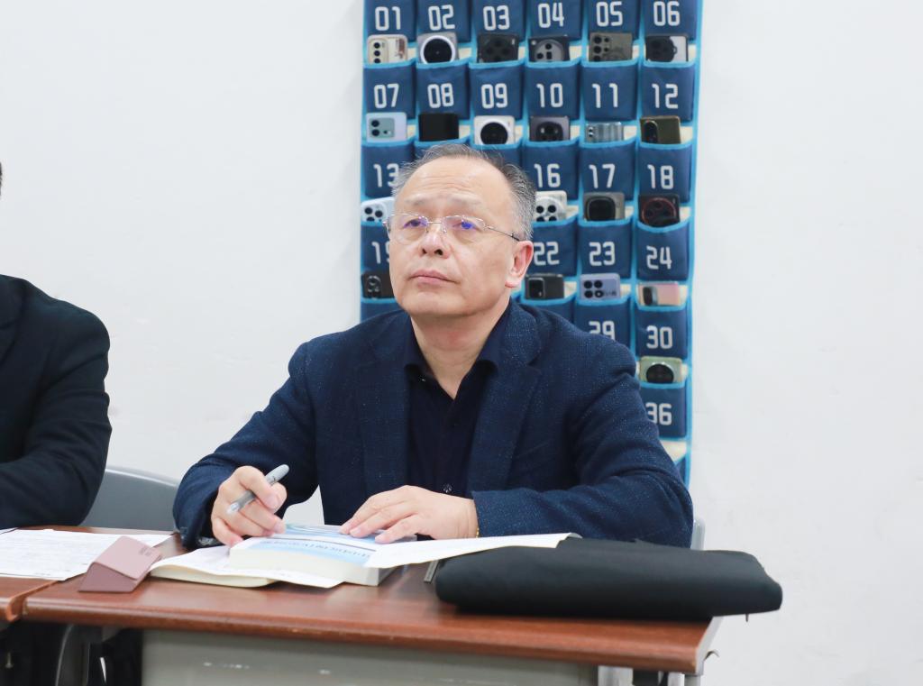 听课过程中,郭永存仔细记录授课内容、教学方法和教学效果等,细心观察教师课堂组织与管理、学生精神面貌和学习状态等情况。课间,郭永存与陈雪洁老师耐心交流,对其备课充分、内容熟练、思路清晰、语言流畅等给予鼓励肯定,并提出意见建议。