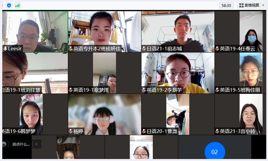 外国语学院承担全校本科生、研究生的外语教学工作,本学期开设课程近80门,授课学生人数近17000名,涉及学生范围广,教师人数多,如何确保在线教学顺利实施,保障教学质量,外国语学院着实下了不少功夫。“学院组建了在线教学督导组、在线教学巡查组和学生信息员反馈组3支院级教学督导督查小组,实行网格化督导督查,确保每节课、每个班级都被覆盖。每周五下午,学院召开线上教学工作例会,向各系反馈一周教学督导督查情况,做到即知即改、迅速整改”,外国语学院院长王宗华介绍说。